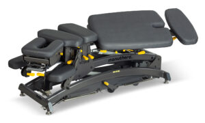 - Traditional tables remain fixed, requiring therapists to work against gravity